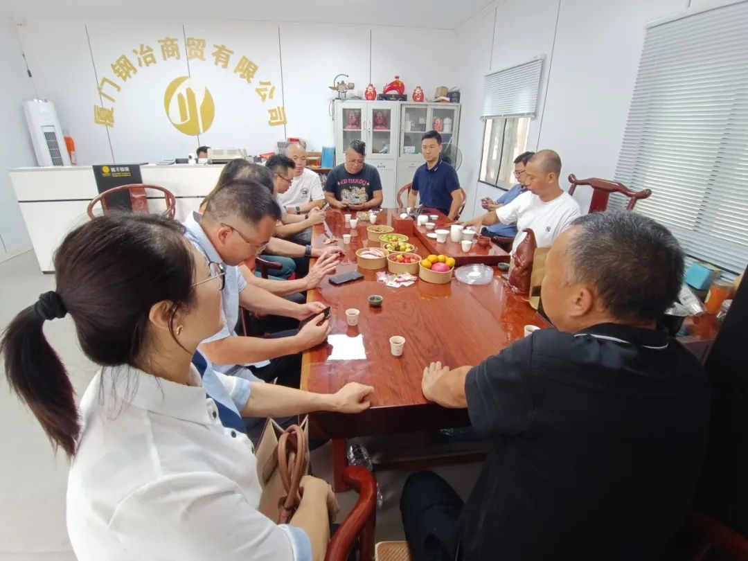 第一站来到会员林兴有总经理公司—厦门金华都钢铁贸易有限公司。大家座谈沟通,交流行业经验,对近年来行业形势、业务曲线、产品分类等进行分析,探讨最优供应商及销售渠道。