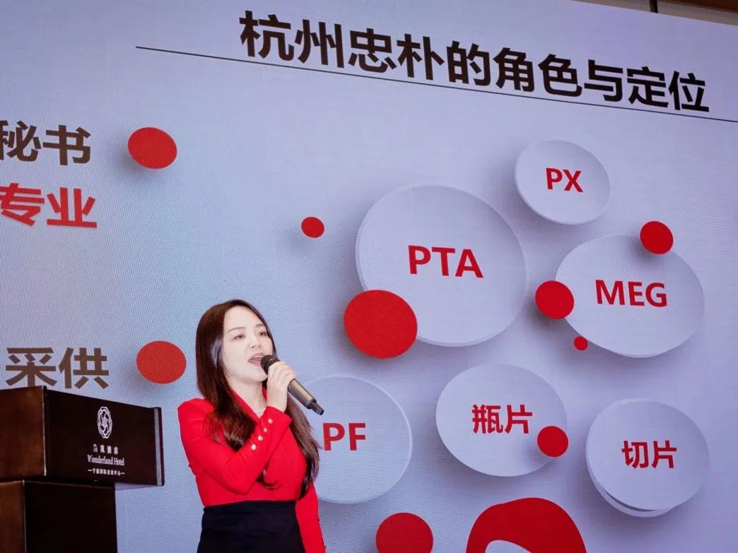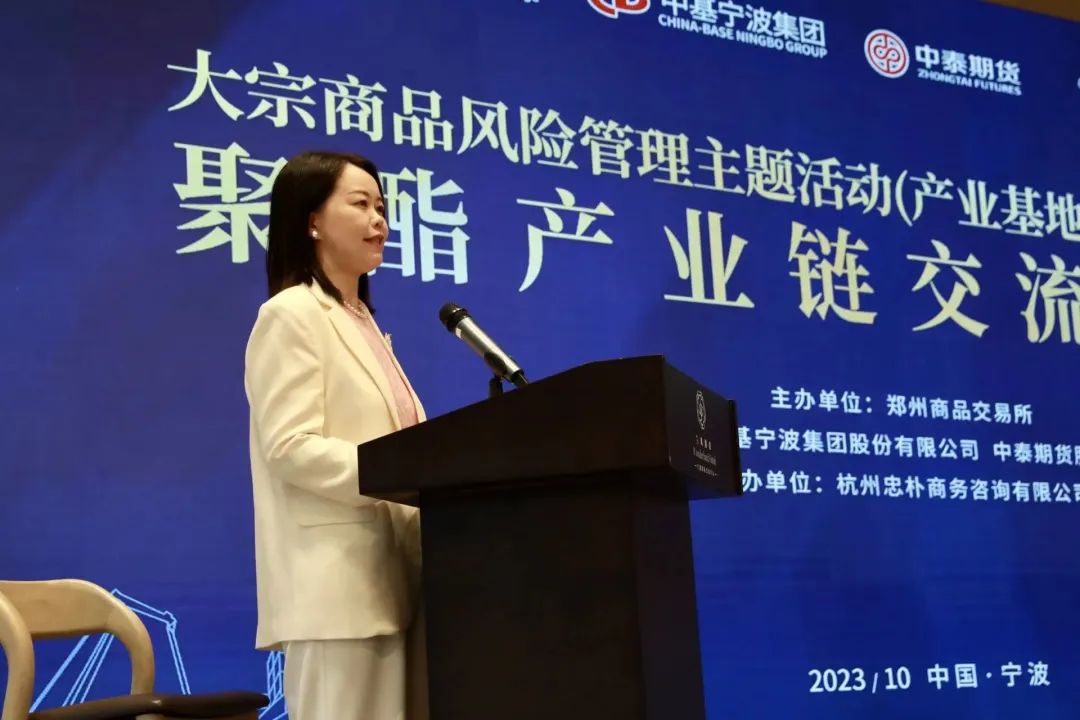 中基副总裁陈静艳出席会议,并作为承办方代表为会议致辞。她表示,今年复杂多变的海外局势导致全球需求端都呈现出不同程度的下行,影响着聚酯产业终端出口,贸易商作为产业的“链接环”和交易风险的“蓄水池”,其成熟的策略研投体系及风控体系的作用愈发凸显。