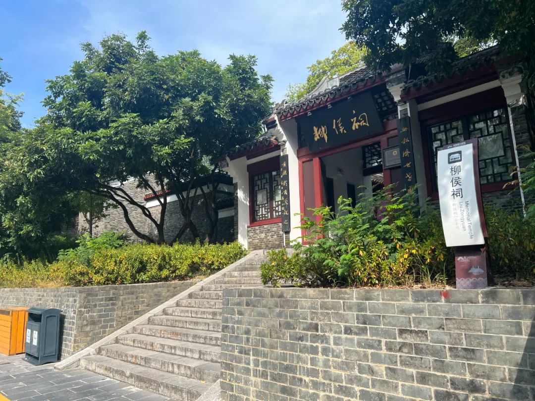 柳侯祠柳州市中心柳侯公园内的西隅,原名罗池庙(因建于罗池西畔得名),现改名为柳侯祠,是柳州人民为纪念唐代著名的政治家、思想家、文学家柳宗元而建造的庙。一行人跟随讲解员的脚步走进柳侯祠,通过祠内陈列的文物和史料,获知柳宗元的平生和政绩。