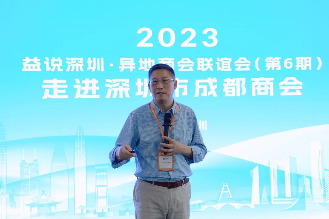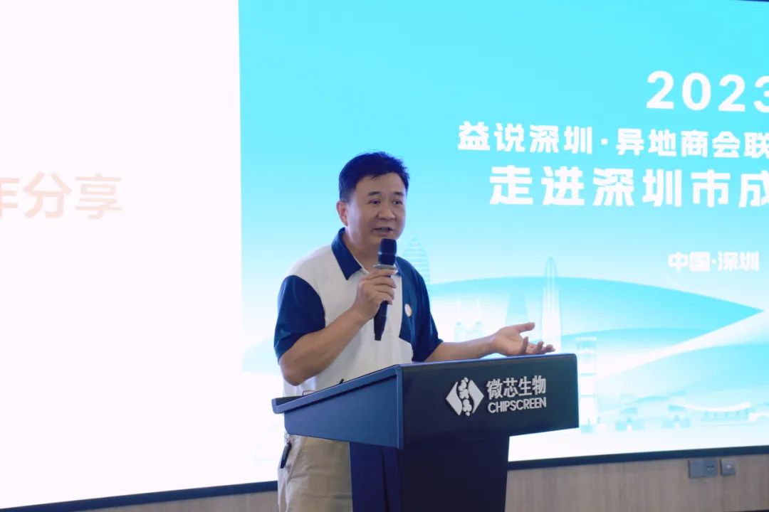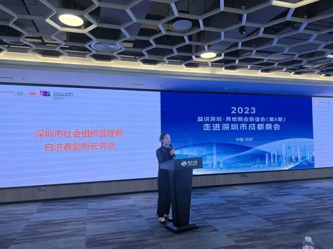 2023年10月16日,由深圳市社会组织总会策划的系列主题活动“益说深圳·异地商会联谊会”(第6期)在深圳市成都商会会长单位“深圳微芯生物科技股份有限公司(股票代码:688321)成功举行。深圳市社会组织管理局副局长白洪春,市社会组织管理局登记管理处副处长郑培伟 ,深圳市社会组织总会执行会长苏建东等出席会议,本次联谊会邀请了30余家异地商会会长、秘书长参加。我会执行会长兼秘书长梁庆伟代表商会参加了此次联谊会。