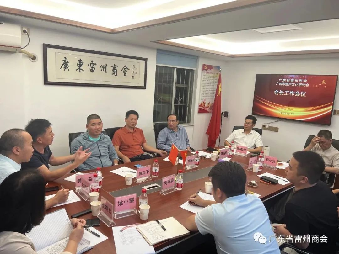 10月17日下午,广东省雷州商会、广州市雷州文化研究会在两会会议室召开会长工作会议,会议由秘书长陈启明主持,会议总结与商讨了2023年两会主要工作任务的遂行进展及完成总体目标的计划、具体工作时间安排及两会的组织建设等问题。会上,讨论了两会的传统活动及未来要进一步落实的工作重点。
