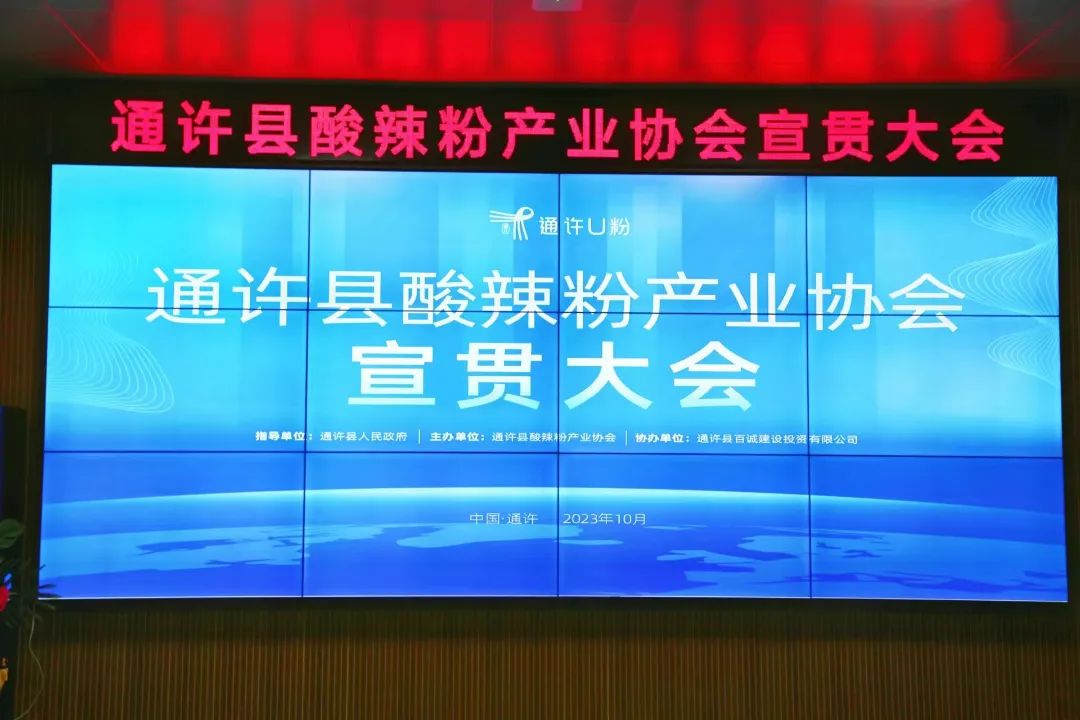 10月19日,通许县酸辣粉产业协会宣贯大会召开。通许县百诚建设投资有限公司董事长张宝建,通许县市场监督管理局副局长赵万里,通许县酸辣粉产业协会会长宗国强,通许县酸辣粉产业协会秘书长郭晶,纳食产业研究院院长司志刚等协会会员代表出席会议。
