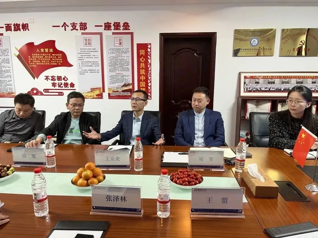 2023年10月20日,天津江西商会常务副会长、全球浔商总会副会长、九江商会(筹建中)会长陈敏,执行会长王悦和天津市滨海新区塘沽街道商会会长王安龙,党支部书记刘军莅临我会,我会终身荣誉会长田井权,党支部书记南楠,秘书长张泽林,副秘书长王盟、张占伟热情接待。