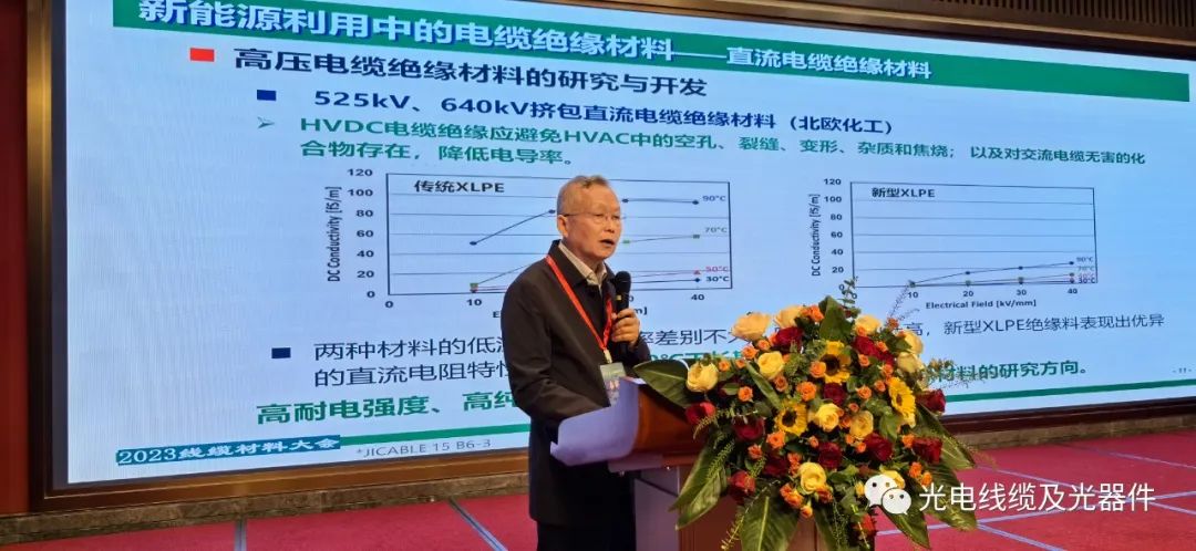 新技术报告(一)阶段由江苏永鼎股份有限公司研究院 韦祖国 院长主持。分别由上海凯波电缆特材股份有限公司段春来 副总经理、总工程师作《氢氧化镁在电缆料中的应用》的报告;中广核高新核材集团有限公司费楚然 技术总监作《聚丙烯材料在电缆中的应用》的报告;浙江万马高分子材料集团有限公司李鹏举 研发工程师作《通讯缆用高性能低烟无卤护套料研究》的报告。