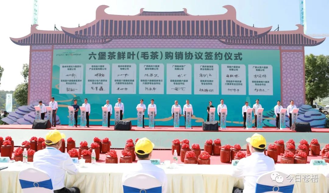 10月15日,梧州六堡茶秋季开茶仪式在苍梧县六堡茶文化广场举行。开茶仪式现场还举行了六堡茶龙头企业与合作社购销协议签订仪式,其中,苍梧县六堡茶产业发展有限公司与苍梧县沁怡六堡茶业专业合作社成功签约六堡茶秋茶收购协议。今年以来,苍梧县六堡茶产业发展有限公司从苍梧县沁怡六堡茶业专业合作社采购社前茶5000斤、明前茶10000斤、夏茶2000余斤、秋茶毛茶3000多斤,带动群众增收致富,进一步促进巩固拓展脱贫攻坚成果同乡村振兴有效衔接。