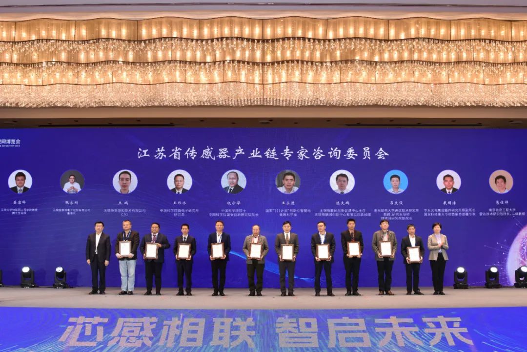 宋旭东、蒋敏为祝宁华等10位江苏省传感器产业链专家委员会首批聘任专家代表颁发聘书。