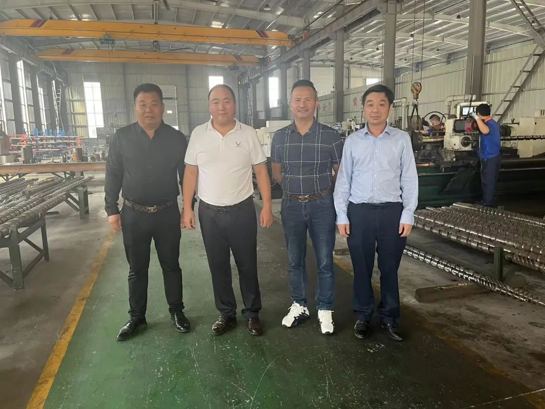 在走访舟山市华富塑料机械有限公司时,孙景付孙总带领走访人员参观了螺杆生产车间,向走访一行展示了企业雄厚的技术力量和先进的工艺装备。“你们公司发展到现在已经拥有完善的企业管理体系和质量管理体系,商会中也有不少同行业的会员,有时间你们可以多交流多探讨,共同拓宽信息渠道,实现合作共赢。”谢文胜会长说到。