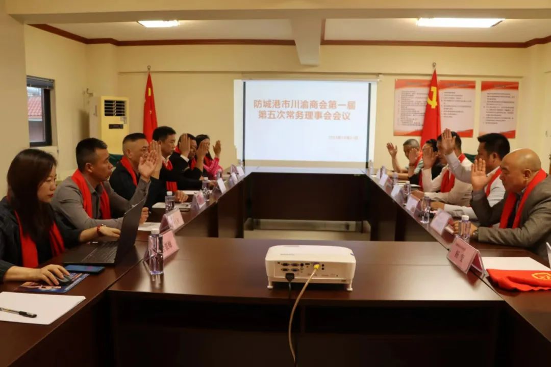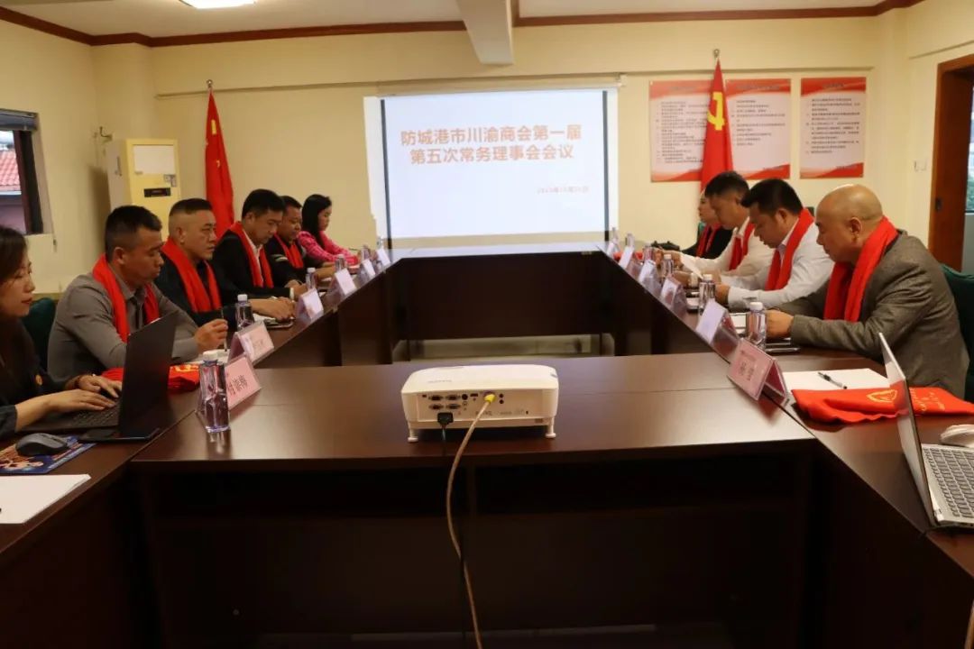 10月21日下午,防城港市川渝商会召开第一届第五次常务理事会工作会议,全面总结前一阶段工作情况,安排部署下阶段重点工作。商会会长、理事长任义华主持会议,党支部书记、监事长、常务理事肖兴红,执行会长、常务理事谢刚,秘书长、常务理事李吉,常务副会长、常务理事徐学彬,王大芳,常务副会长、理事、赵继先,副会长、理事范小斌,陈井燕,尹玉彬参加会议。执行秘书长杨莹摄影,副秘书付崇梅记录。