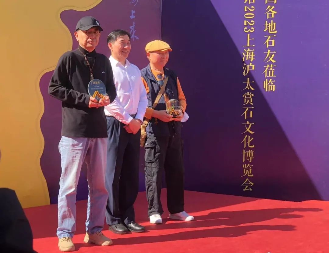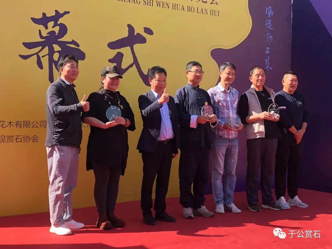 由何宝宽、毕崇毅、陈正明、曹树明、俞颖、王占东、景南为荣获金奖的藏家石友颁奖。