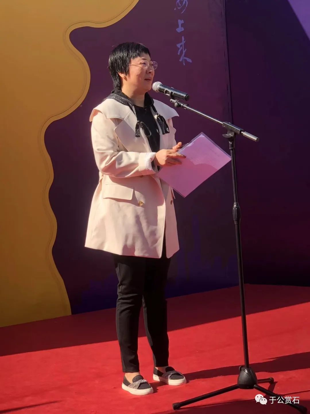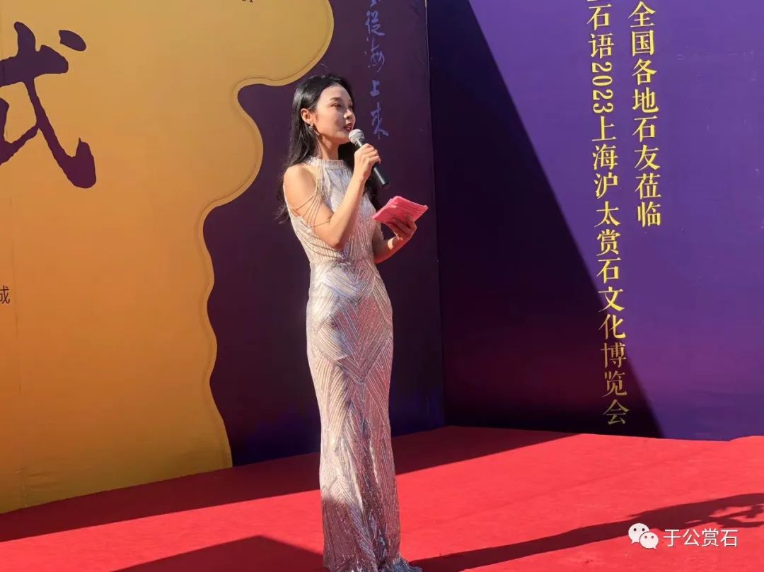 由上海市静安区甘泉街道党工委副书记俞颖女士致辞。她讲到赏石文化源远流长,自古以来,文人雅士皆喜爱赏石。石头之美,美在自然,美在文化。赏石文化体现了人们对自然、对生活的热爱,展现了人类与自然和谐共生的精神追求。今天,我们以石为媒,共同探讨、交流、传承这一独特的文化遗产。