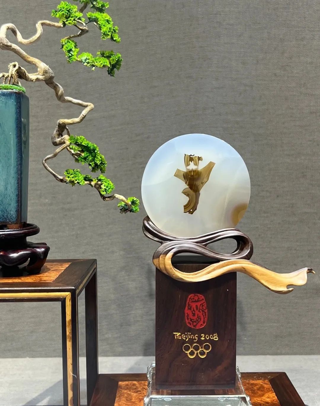 接下来举行了颁奖仪式,由中国观赏石协会副会长张建宇、袁玉良为荣获优秀创意奖的藏家石友代表赵德奇、杨俊杰颁奖。