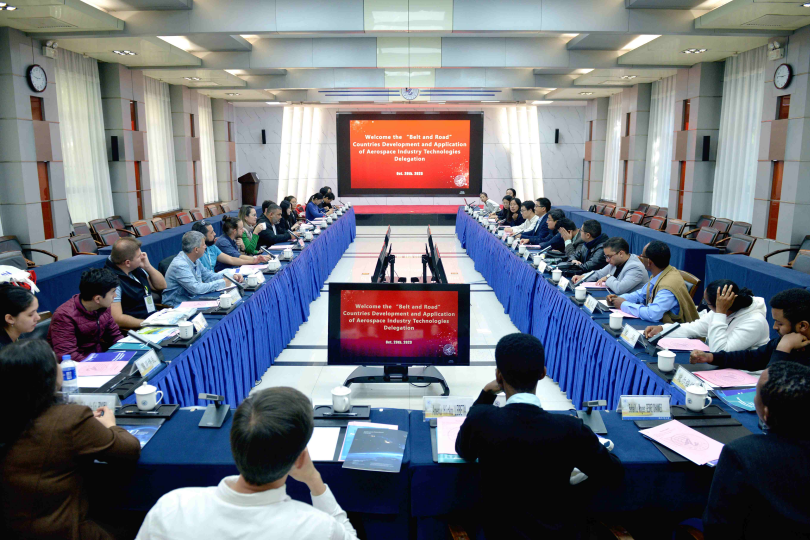 10月20日下午,由国合署和商务部联合主办的“一带一路”国家航天产业技术与应用发展研修班来校开展研学。研修班由来自巴西、乌兹别克斯坦、保加利亚、埃塞俄比亚、埃及和泰国等六个“一带一路”共建国家的二十多位司处级学员组成。