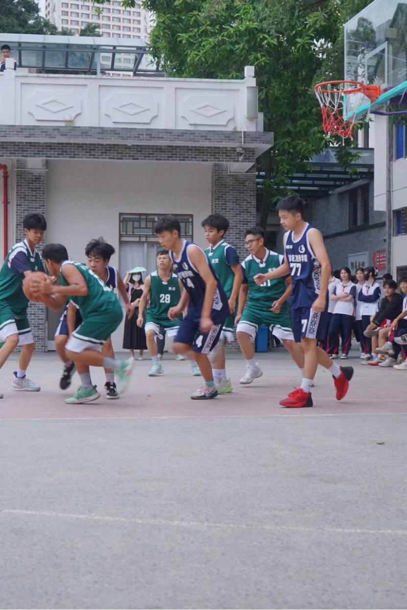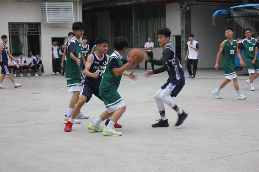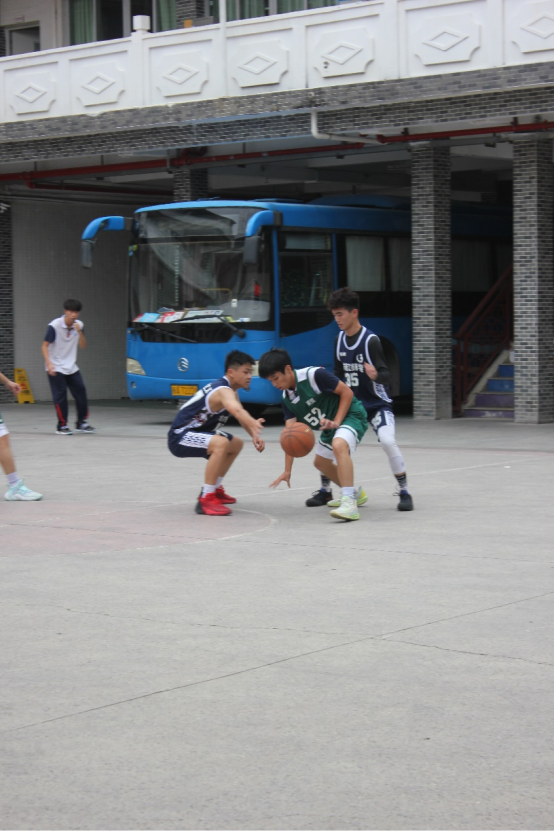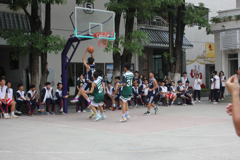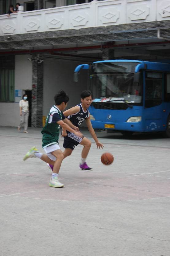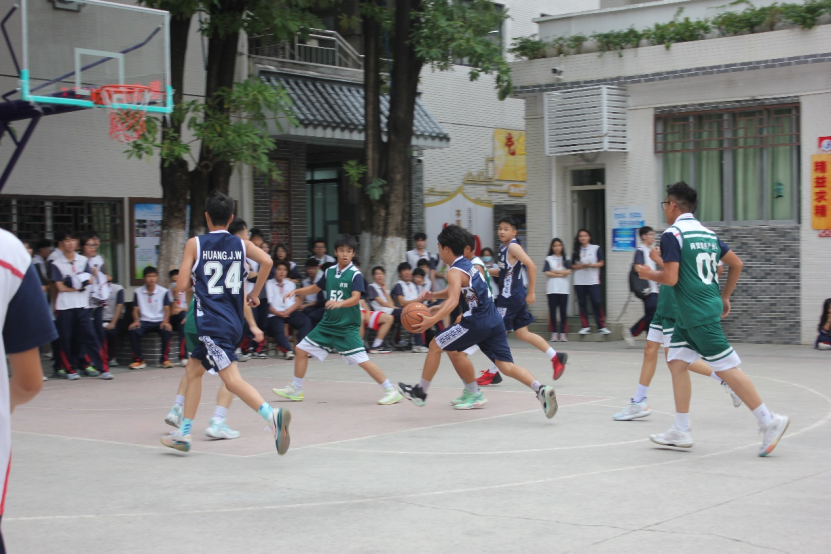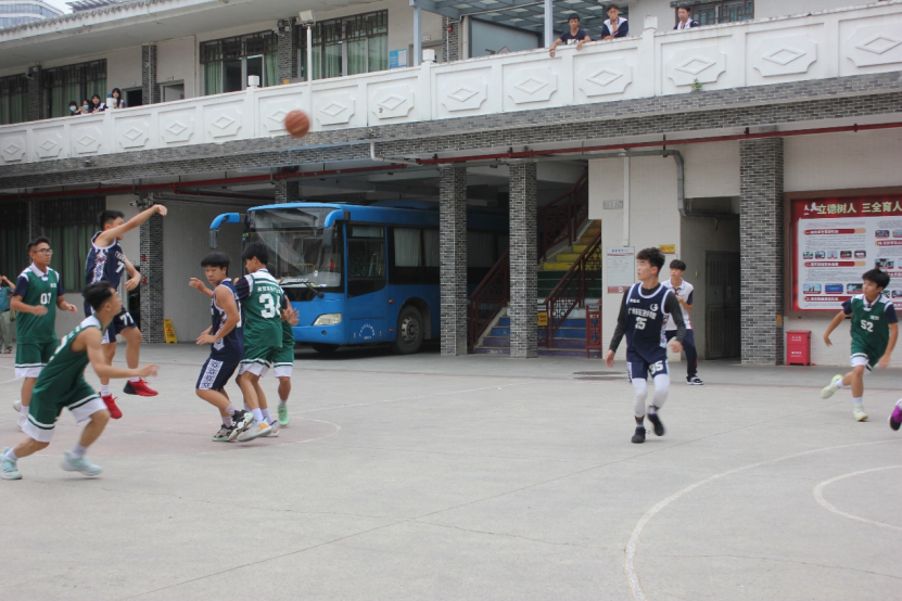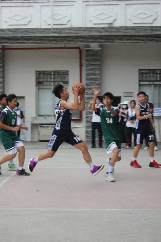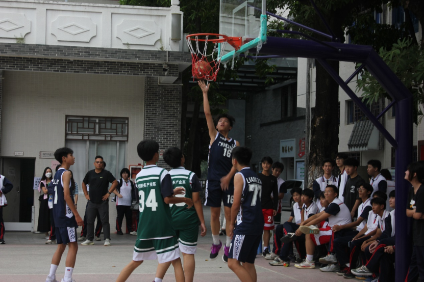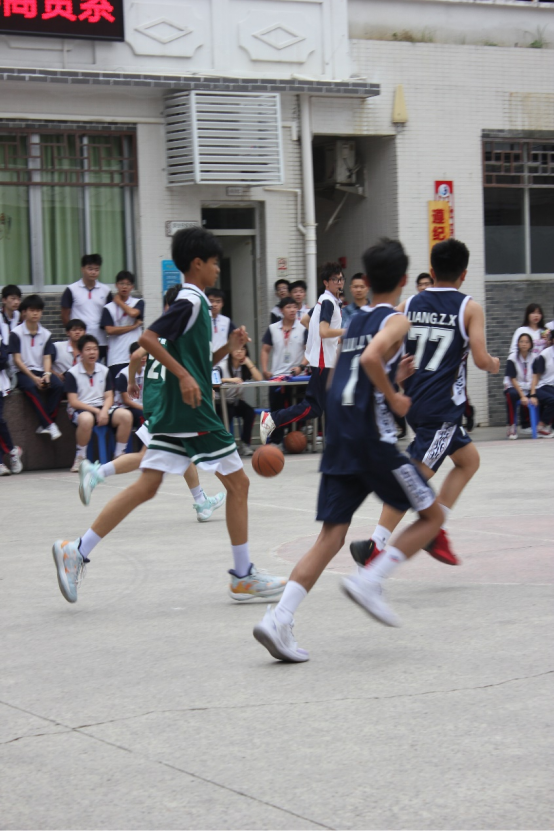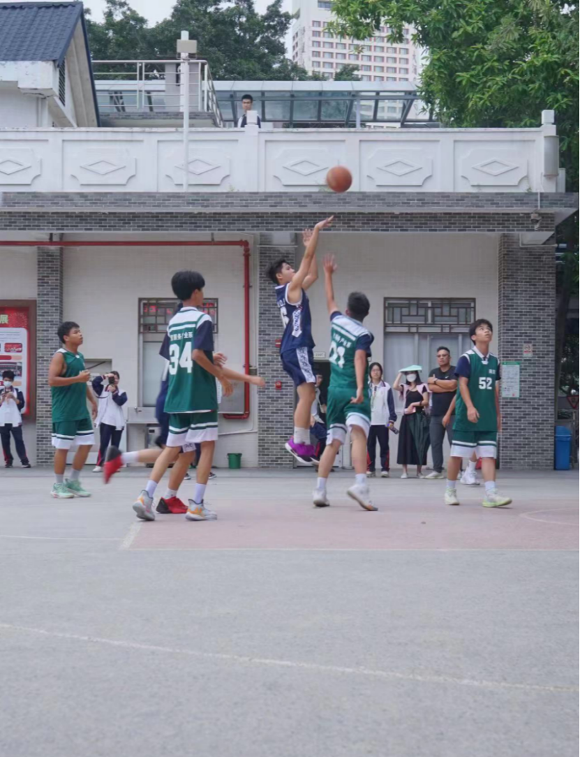 篮球场上运动员们配合默契、控制节奏、精准投篮。热血的少年们不知疲倦,此时他们胜券在握。