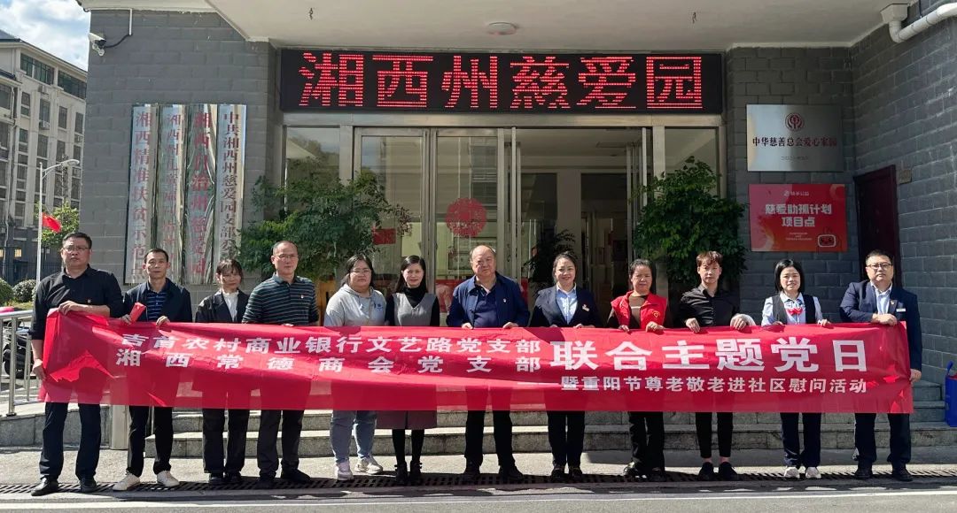 金秋送爽,岁岁重阳!为弘扬中华民族“尊老、爱老、助老、敬老”的传统美德,营造尊老孝老的社会氛围,在“九九重阳节”即将到来之际,湘西州常德商会党支部与吉首农村商业银行(文艺路)党支部联合组织开展主题党日活动,走访慰问吉首马坡岭社区生活困难老人。两个党支部党员以及亮德组部分会员共计16余人参加活动。