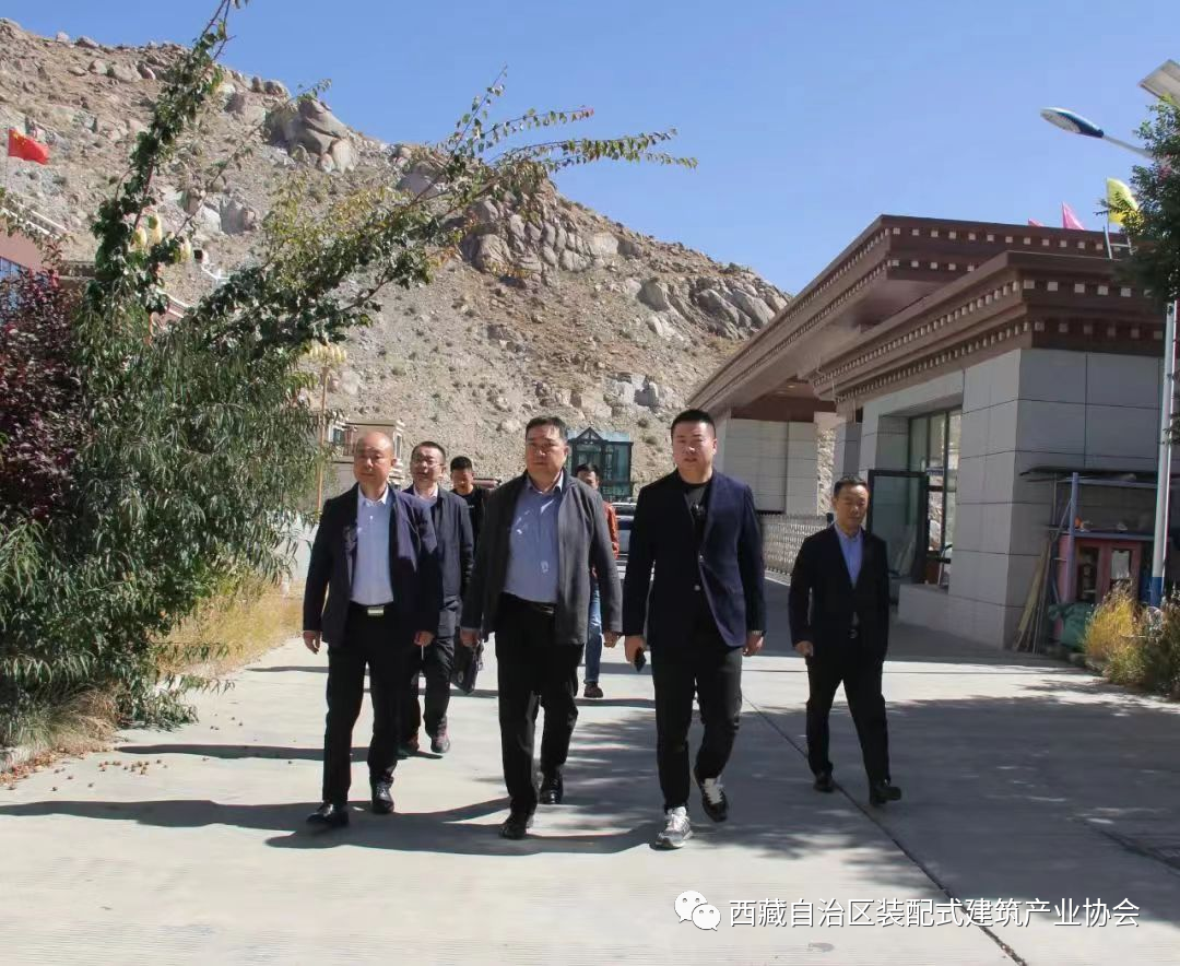 座谈会后,韩思明一行参观西藏自治区装配式建筑产业协会会长单位--西藏圣邦新材料科技有限公司生产基地和装配式建筑样板区域。