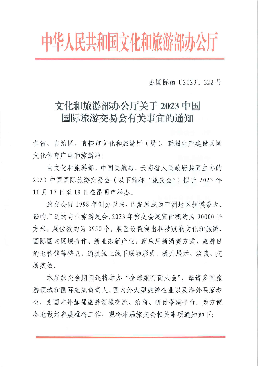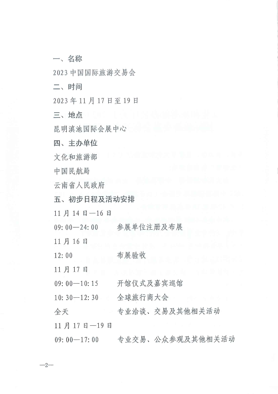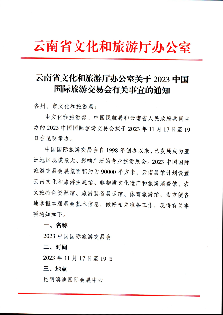 由中华人民共和国文化和旅游部、中国民用航空局、云南省人民政府共同举办的2023中国国际旅游交易会(以下简称:旅交会)将于2023年11月17日—19日在昆明滇池国际会展中心举办。