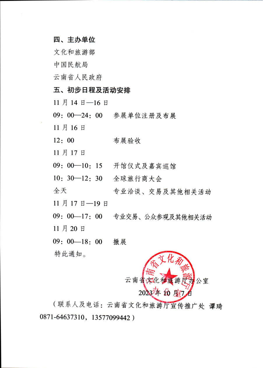 (四)主办单位:中华人民共和国文化和旅游部、中国民用航空局、云南省人民政府