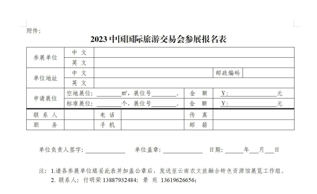 (三)各单位请与承办服务商联系确认意向展位并提交参展报名表,确认后核发展位确认书。
