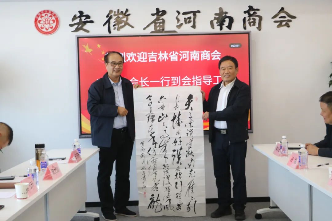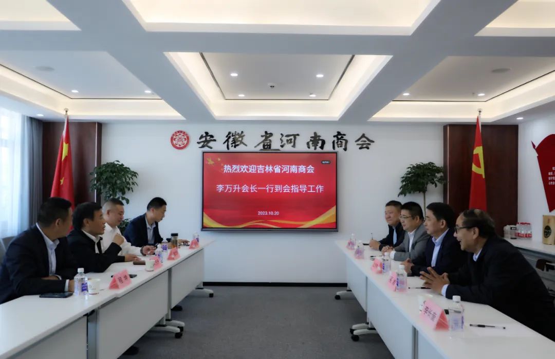 10月20日,在参加完吉林省-安徽省招商引智座谈会后,吉林省河南商会会长李万升、苏州河南商会创会会长曾文园一行到访我会,会长金继典,支部书记、执行会长段猛,常务副会长、芜湖市河南商会会长程坤,常务副会长李志远、王月庆,副秘书长李长奎等予以热情接待。双方缔结友好商会,并就商会内部治理、商会平台运营、整合豫商力量等深入交流。豫籍老同志展岩也参加了本次活动。