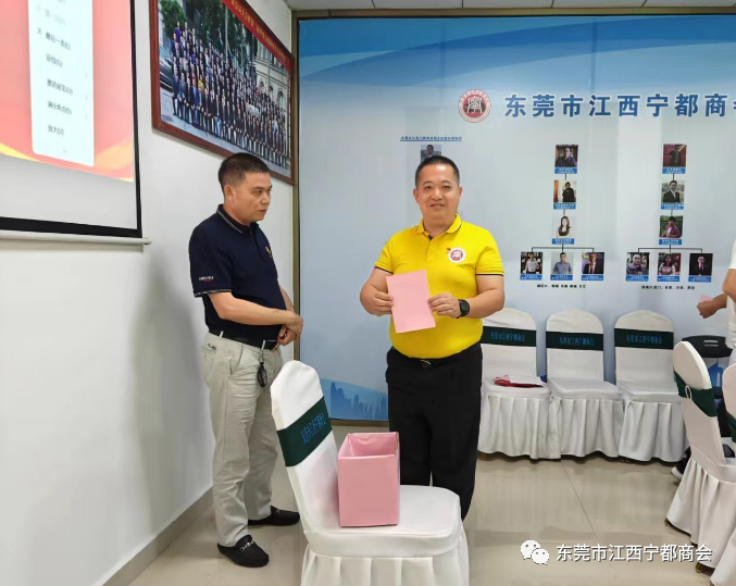 县委组织部两新党建室严彬彬宣读通过宁都县直属机关工委关于成立中共宁都(东莞)流动党员支部委员会、关于中共宁都(东莞)流动党员支部委员会委员候选人的批复。我会候任秘书长/党员曾卫东宣读《选举办法》草案,现场讨论和通过了《选举办法》,监票人、计票人名单,经全体举手表决后全票通过。