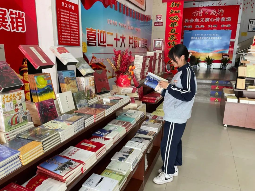 步入新华书店临汾分会场,迎面而来便是精心打造的晋版图书展台,各主题横幅展板格外醒目,各专台专架造型多样,展现深厚底蕴、传递精神力量。