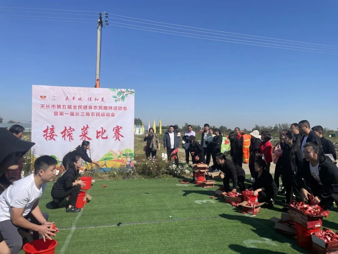 运动会共有八个比赛项目,除了常见的“采摘”“运粮”“土豆喂鸡”“链杆取粉”“山羊跑”,还增加了“掼蛋”“接榨菜”“耕地走”等项目,吸引了来自天长市金集镇、大通镇、新街镇、石梁镇,江苏高邮镇、独山镇、马坝镇等多个周边乡镇共计200余名人员的积极参与。