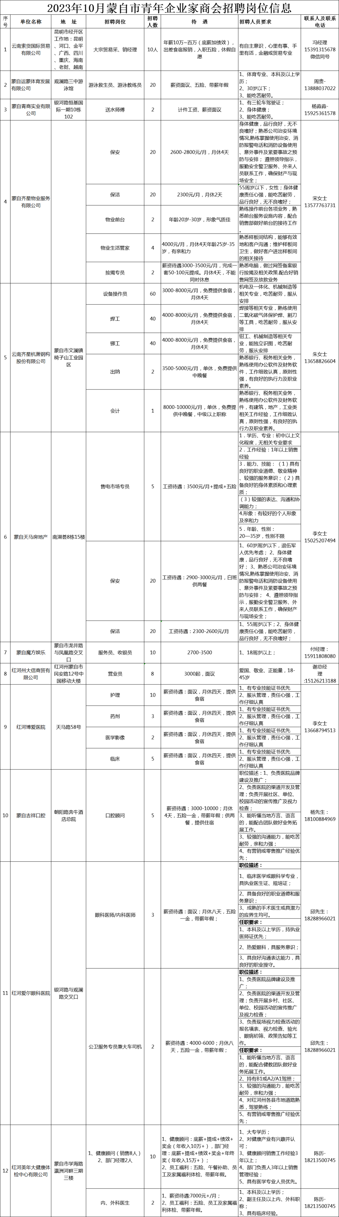 2023年10月蒙自市青年企业家商会招聘岗位信息