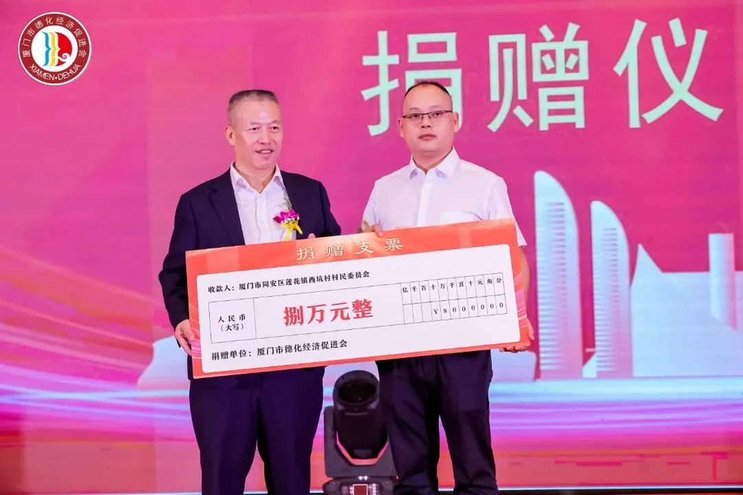 厦门市德化经济促进会还向厦门市“万企兴万村”工作中结对帮扶的同安区莲花镇西坑村捐赠善款8万元。