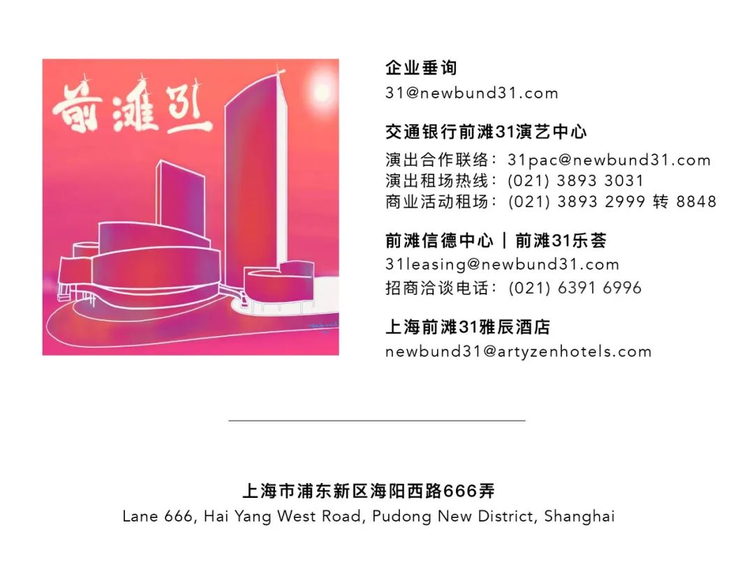 中国上海国际艺术节作为前滩31重要战略合作伙伴,在未来五年的战略合作中,将自身最具影响力的国际演艺资源及演出交易会落地前滩31,双方强强联袂,共同推动演艺行业的强劲复苏和文旅产业的深度融合。