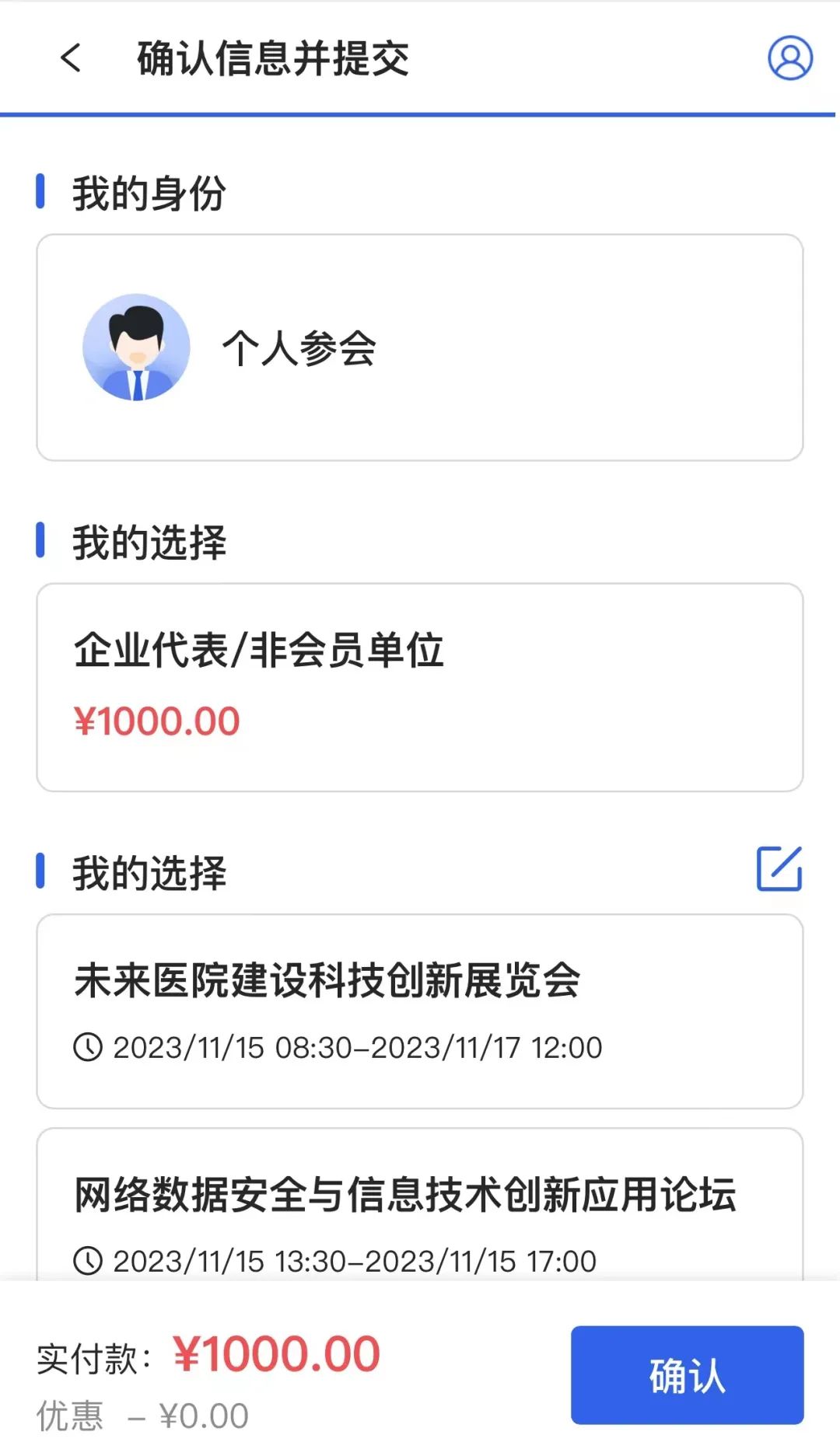 确认信息并提交