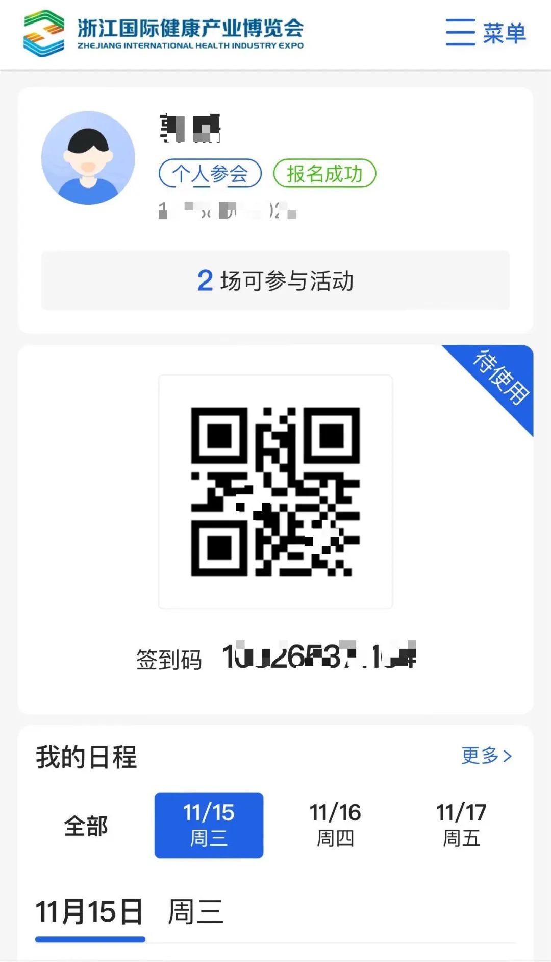 点击主页面个人中心,可查看您所选择的论坛或其他参会详情。