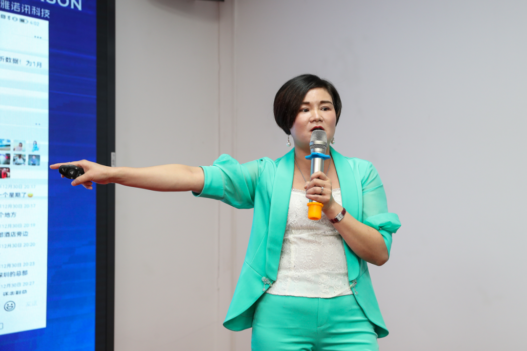 方珊梅轮值会长作题为《让天线连接世界》的主题分享,分享了自己创立的雅诺讯科技从作坊式生产车间到行业领军者的艰辛历程以及如何打造具有核心竞争力的管理团队的经验心得。