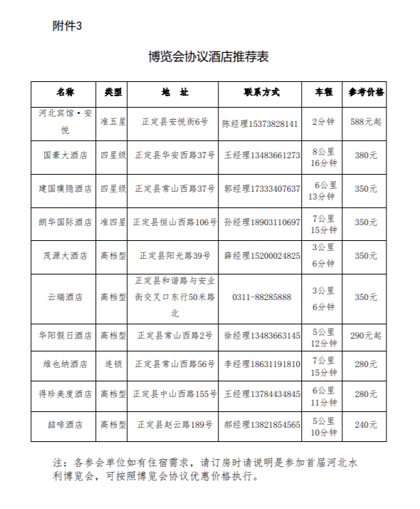 附件3:博览会协议酒店推荐表