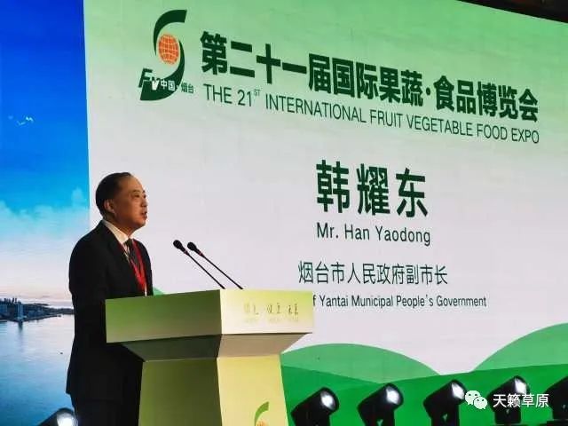 韩耀东在致辞中表示,当前烟台正在矢志不渝推进绿色低碳高质量发展,奋力冲刺地区生产总值过万亿级城市,将通过国际果蔬·食品博览会这个平台,以开放包容的态度、创新进取的品格与国内外友商共创美好未来,以一流的服务和环境欢迎国内外友商来烟台投资兴业。
