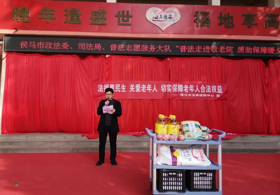 杜永庆一行第一站先到了乔村敬老院看望了在这里康养居住的老人,为老人们带来米面油、护牙礼品、苹果、挂历等,为老人们送上了祝福鲜花;