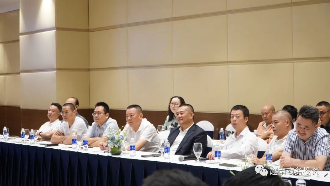 座谈会上,代表团各代表依序发言,就企业经营业务、访越目的作了详细介绍。缪仁赖会长与理事单位成员就代表团成员感兴趣关于中国“走出去”企业在越南设立的子公司的融资政策、越南投资入驻条件的问题,越南对外商投资的优惠政策以及越南关税等问题进行了解答。各企业家都表示收获满满,进一步了解越南,有利于今后精准投资。
