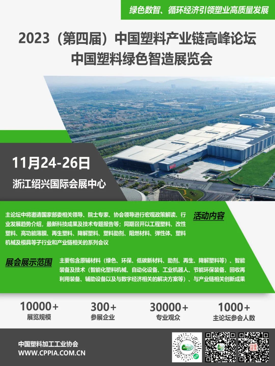 2023第四届中国塑料产业链高峰论坛及中国塑料绿色智造展览会将于2023年11月24-26日在浙江绍兴国际会展中心盛大召开!