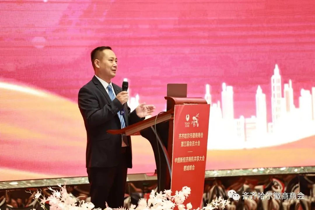 齐齐哈尔市徽商商会会长刘准在致辞中表示,我们始终牢记抱团发展的初心,致力于打造一个汇聚徽商、共谋发展的平台。今天的大会,我们将集中展示徽商风采、分享成功经验、共谋发展大计。同时,我们也将积极响应国家号召,为新经济的发展贡献力量。