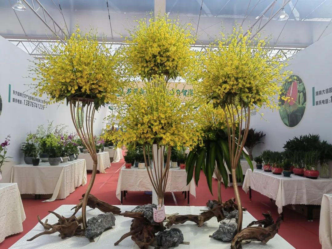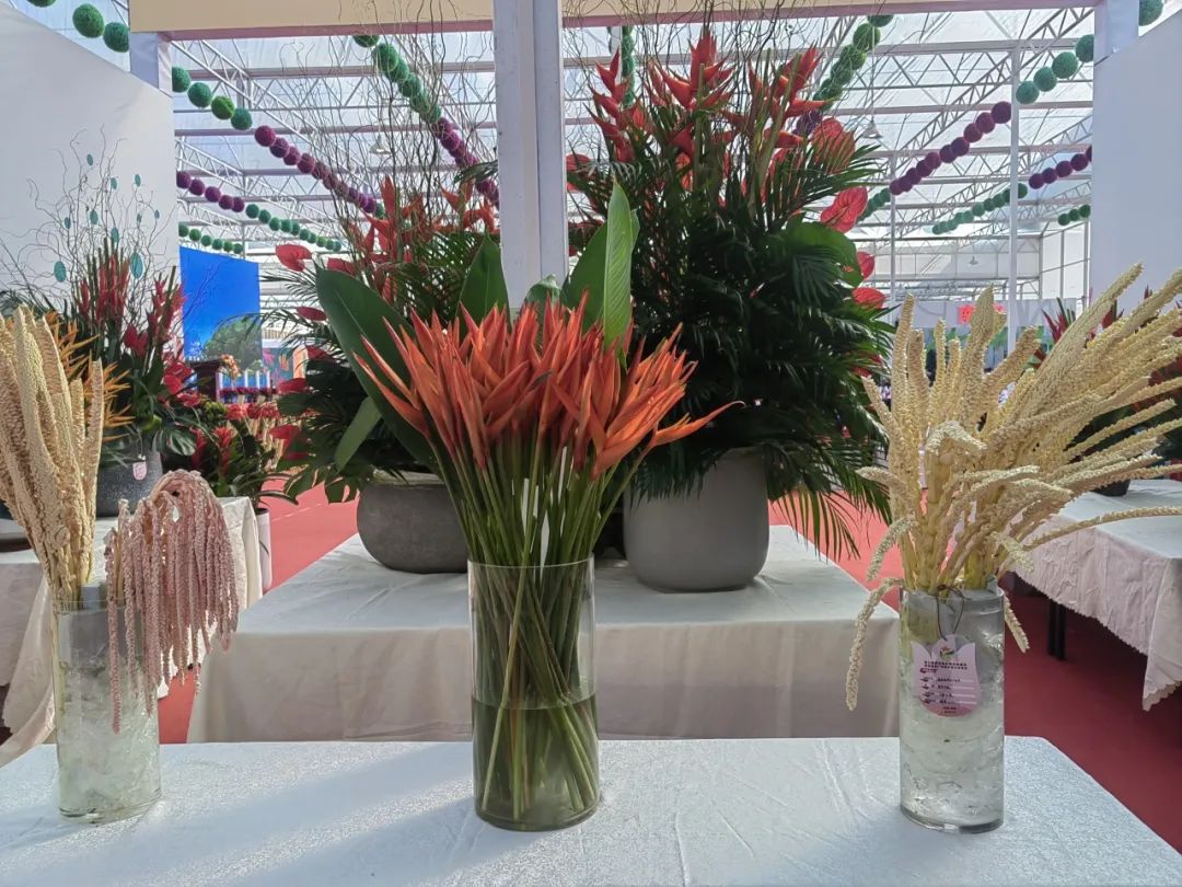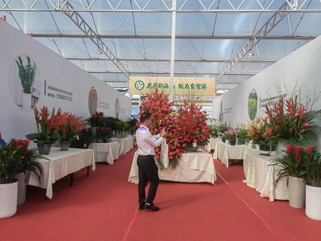 在海南省林业局的指导下,海南省花卉协会组织了海南大信园林股份有限公司、五指山高源花卉有限公司、乐东普英洲花卉园艺有限公司、东方迦南兰花产业有限公司、白沙祥蓝蓝雨林花卉有限责任公司等5家花卉企业在主展馆“海南馆”参展。参展展品丰富多彩,有“红掌”、“凤梨”、“石斛兰”、“金钱树”、“文心兰”等58个展品,其中参加展品竞赛的作品有34个。展会期间,“海南馆”奇花斗艳吸引来了无数市民和外省花企,参观的外省花企对我们的展品兴趣浓厚,有意向与我省参展企业达成合作意向。