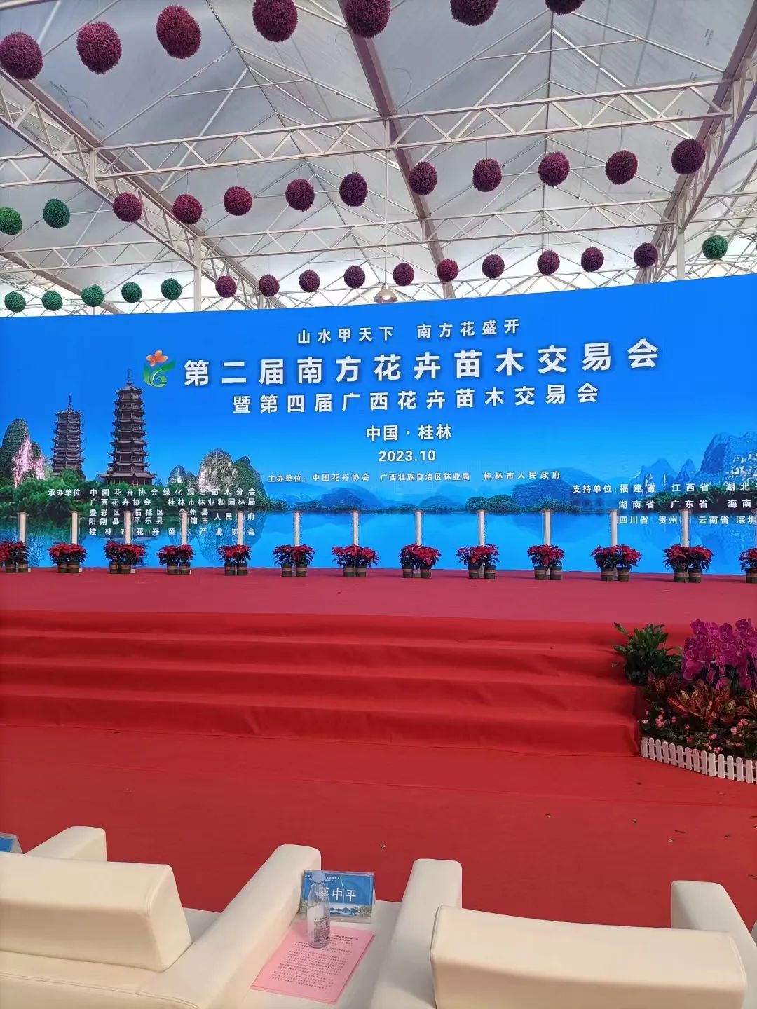 10月18日,由中国花卉协会、广西壮族自治区林业局、桂林市人民政府联合主办,广西花卉协会等有关单位承办,中国泛南方十一省(区、市)花卉协会联盟成员支持的第二届南方花卉苗木交易会暨第四届广西花卉苗木交易会在广西桂林盛大开幕。海南省林业局发改处副处长王勇、海南省林业局种苗站副科长王丕振、海南省花卉协会会长余长龙、常务副会长张香秦等代表出席开幕式。