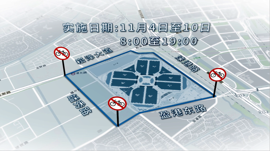 为确保2023年第六届中国国际进口博览会安全、顺利进行,根据《中华人民共和国道路交通安全法》等有关规定,上海市公安局决定于2023年10月25日至11月12日期间,对本市入沪高速公路省际道口,以及部分道路和区域实施交通管制。现通告如下: