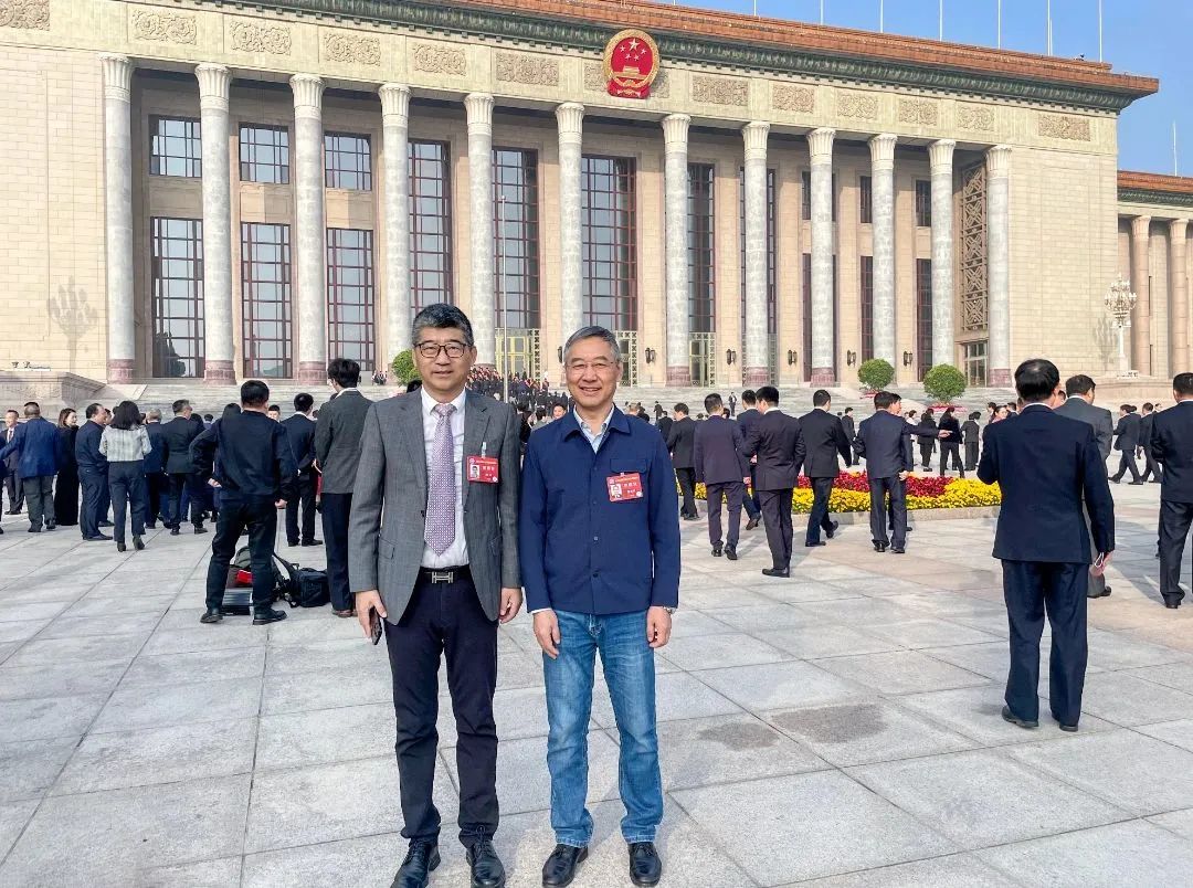 全联石材业商会会长、英良集团董事长刘良与全联石材业商会秘书长陈雪根在北京参加全国工商联成立70周年庆祝大会。