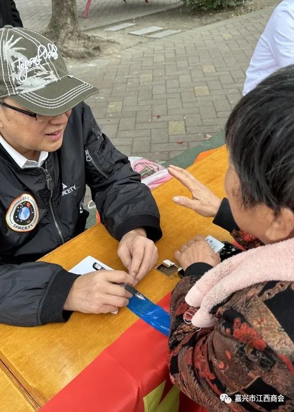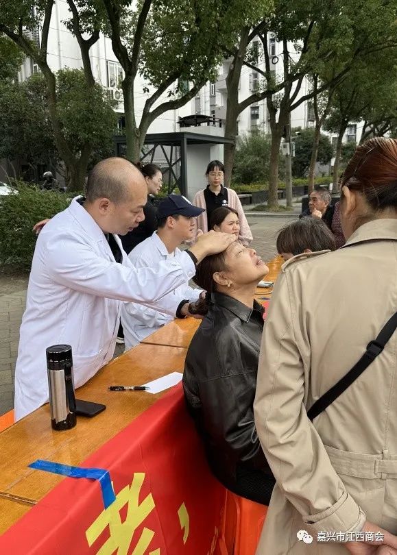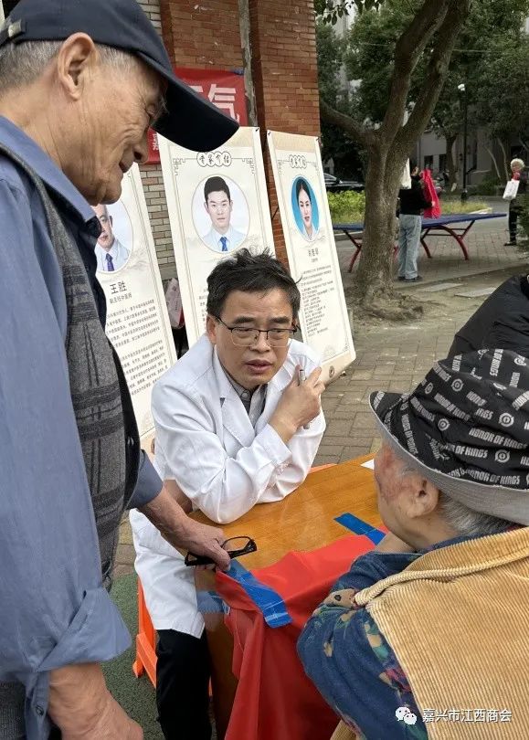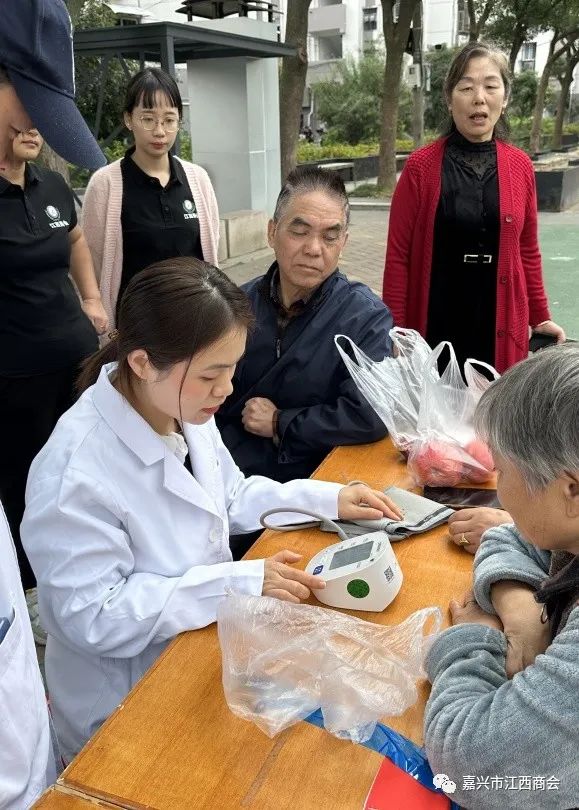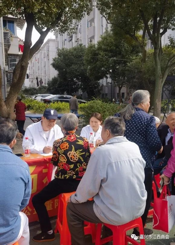 这次敬老服务活动,嘉兴市江西商会主要是依托在禾医疗界赣籍人士资源丰富的优势,为社区老人开展老年病防治义诊咨询服务。嘉兴市中医院赣籍医师罗开涛副院长,对商会开展此次活动给予大力支持,指派心内科副主任医师袁静平、青光眼专科副主任余其智、副主任中医师王胜、ICU副主任严晓阳、主管护师肖雅琴等赣籍知名专家医师前来坐镇义诊,义诊项目主要有心内科、青光眼专科、重症诊治、中医专科、疾病护理等科目。前来问诊就医的老年人络绎不绝,五位专家医师怀揣满满的爱心,细致周到地为老人们检查身体、解答问题、提出治疗方案,并对他们的检查情况、治疗建议要点写在纸上,给每个老年人,深得广大老年人欢迎和赞誉。