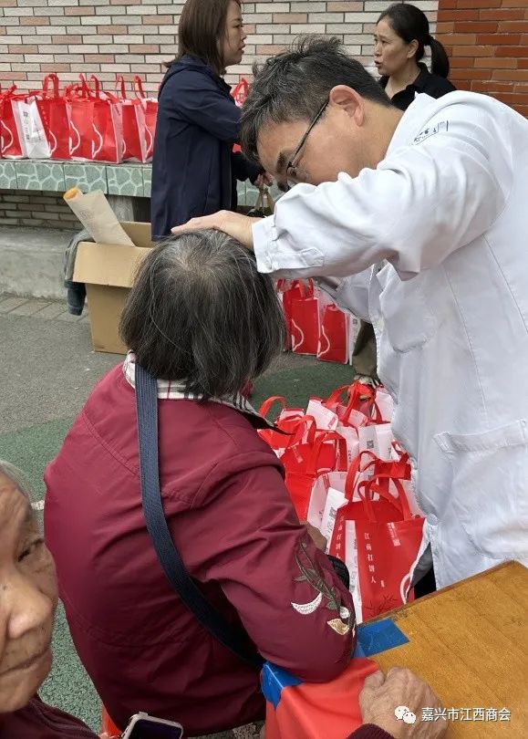 此次敬老爱老公益活动,由嘉兴市江西商会、嘉兴市江西商会党支部、嘉兴市江西商会“一心嘉友赣”公益沙龙主办,由嘉兴市中医院、嘉兴车搞掂汽车科技有限公司、嘉兴果燃科技有限公司、嘉兴太平人寿普航部、嘉兴南湖区辛格灵理发店等五家单位协办。参加本次敬老爱老公益活动的有:商会党支部书记胡昌军,商会“一心嘉友赣”公益沙龙负责人、第三联挂组组长任春晖,副会长周理慧,第五联挂组组长叶青方,会员刘海枝、钟兰英、孙莞珍、廖芳彬等,及秘书处工作人员参加。