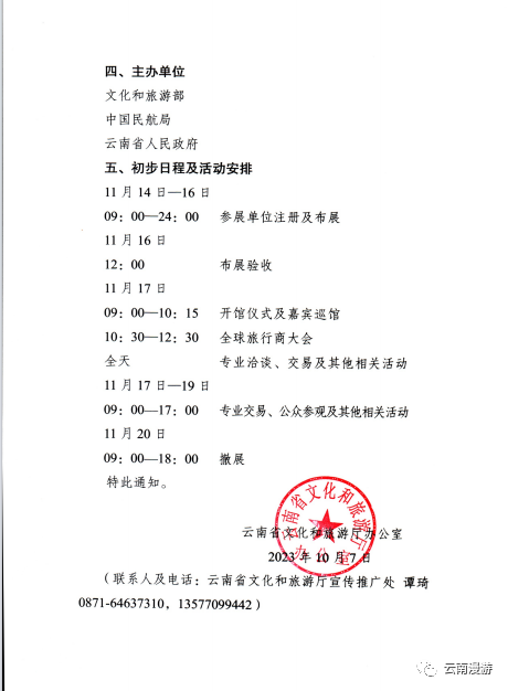 (一)云南农文旅融合特色资源馆的招展组展工作委托云南神州行商务展览有限公司和云南漫游旅游发展有限公司具体承办,云南省旅行社协会研学旅行委员会、云南省文化艺术交流协会、云南省旅游业协会、云南省自驾车与房车露营协会、云南省乡村旅游协会、西双版纳州乡村旅游协会协办。