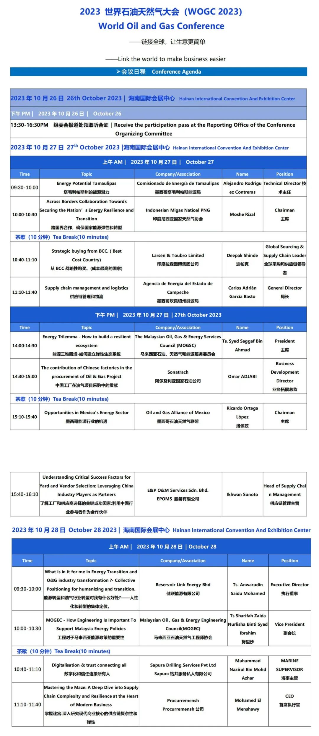 27至28日举办的世界石油天然气大会(WOGC)
