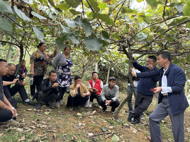 这是贵阳幼儿师范高等专科学校机关四支部了解到金旗村在猕猴桃种植及储存中还存在技术短板的情况下,邀请国家现代农业产业技术体系岗位科学家、贵州大学农学院副院长、博士生导师龙友华教授到金旗村进行猕猴桃种植技术培训的精彩场景。在果园中,龙教授从整形修剪枝条、病虫害防治、再到有机施肥为果农们进行耐心细致的讲解。在村冷库房,龙教授查看了库房设施现状,对存在的问题给出了解决方案,并讲解了猕猴桃入库储存的指标要求及注意事项,整场培训以边讲边答边实操的方式为果农传授实打实的种植技术与管理经验,现场气氛热烈。