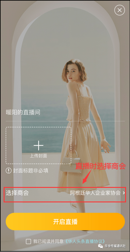 在直播页面选择自己创建的商会
