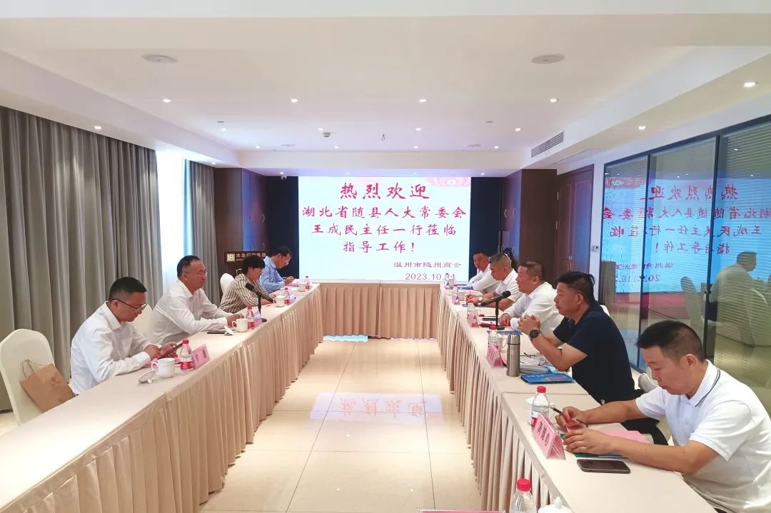 10月24日至25日,湖北省随县人大常委会主任王成民率队莅临我会考察交流,并对我会的会员企业进行了调研工作。随县人民政府副县长李琳、县人民政府办公室副主任罗雄、县建设发展集团公司董事长钟江波陪同考察。我会会长刘本国、常务副会长杜德炎、张金元、常务副会长兼秘书长后永胜、监事龚雄心、理事王慧甫、罗洪、苏猛、会员刘波陪同出席,原温州市市委老干部局一级调研员张化远也出席了此次活动。