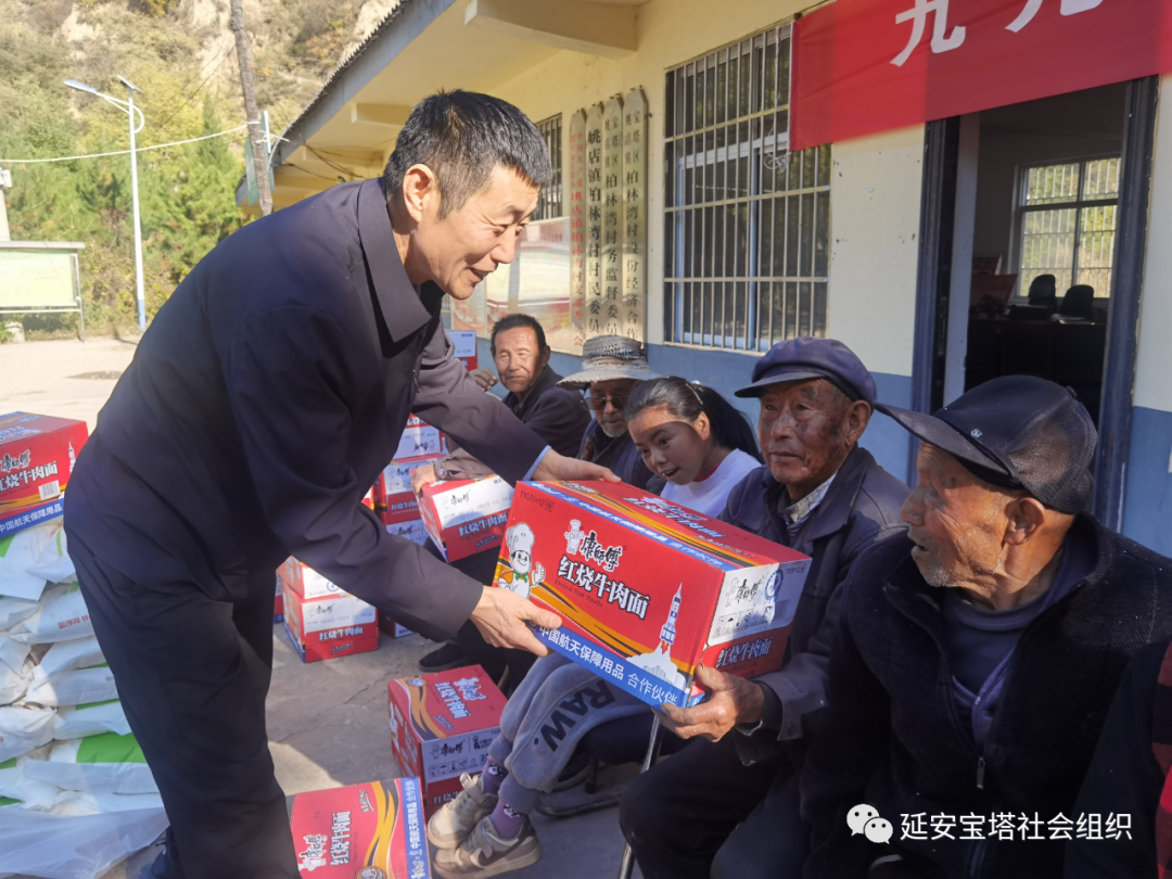 2023年10月23日,农历9月初9,又是一年一度的重阳节。延安社会组织助力乡村振兴合力团成员组织延安市河南商会,组织全体会员捐款为姚店镇柏林湾村14位老人开展献爱心活动。